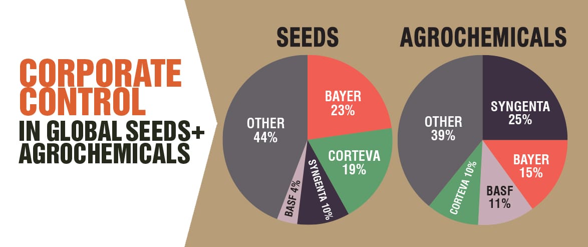 - The two largest seed companies, Bayer and Corteva (DowDuPont), now control 42% of the global commercial seed market.