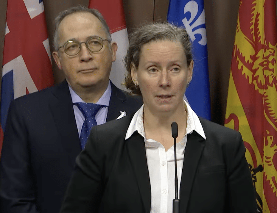 Lucy Sharratt of CBAN speaks at a press conference for labelling organized by MP Yves Perron. Parliament Hill, Dec 1, 2025.